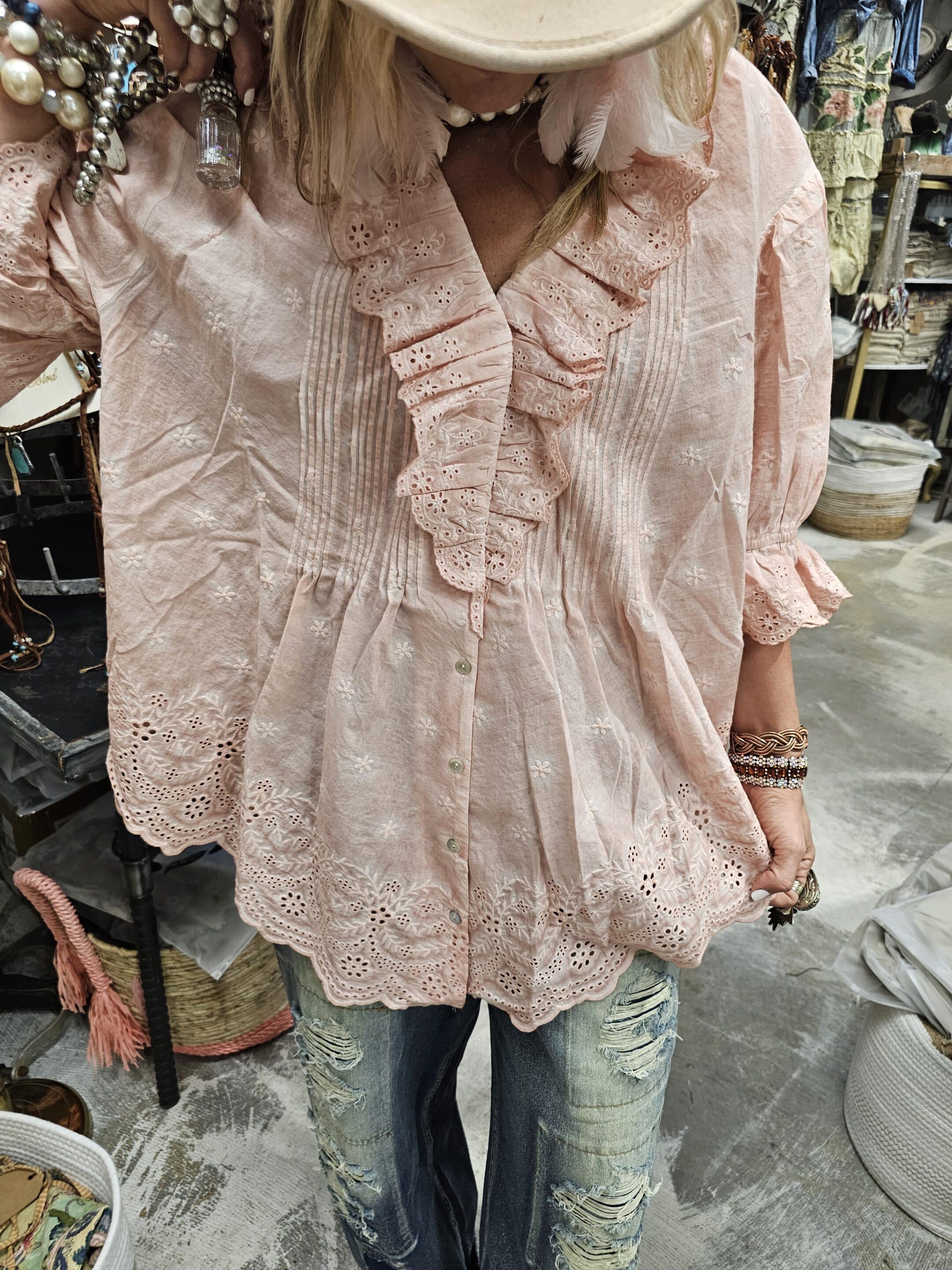Pink Eyelet Linen Top Bundle