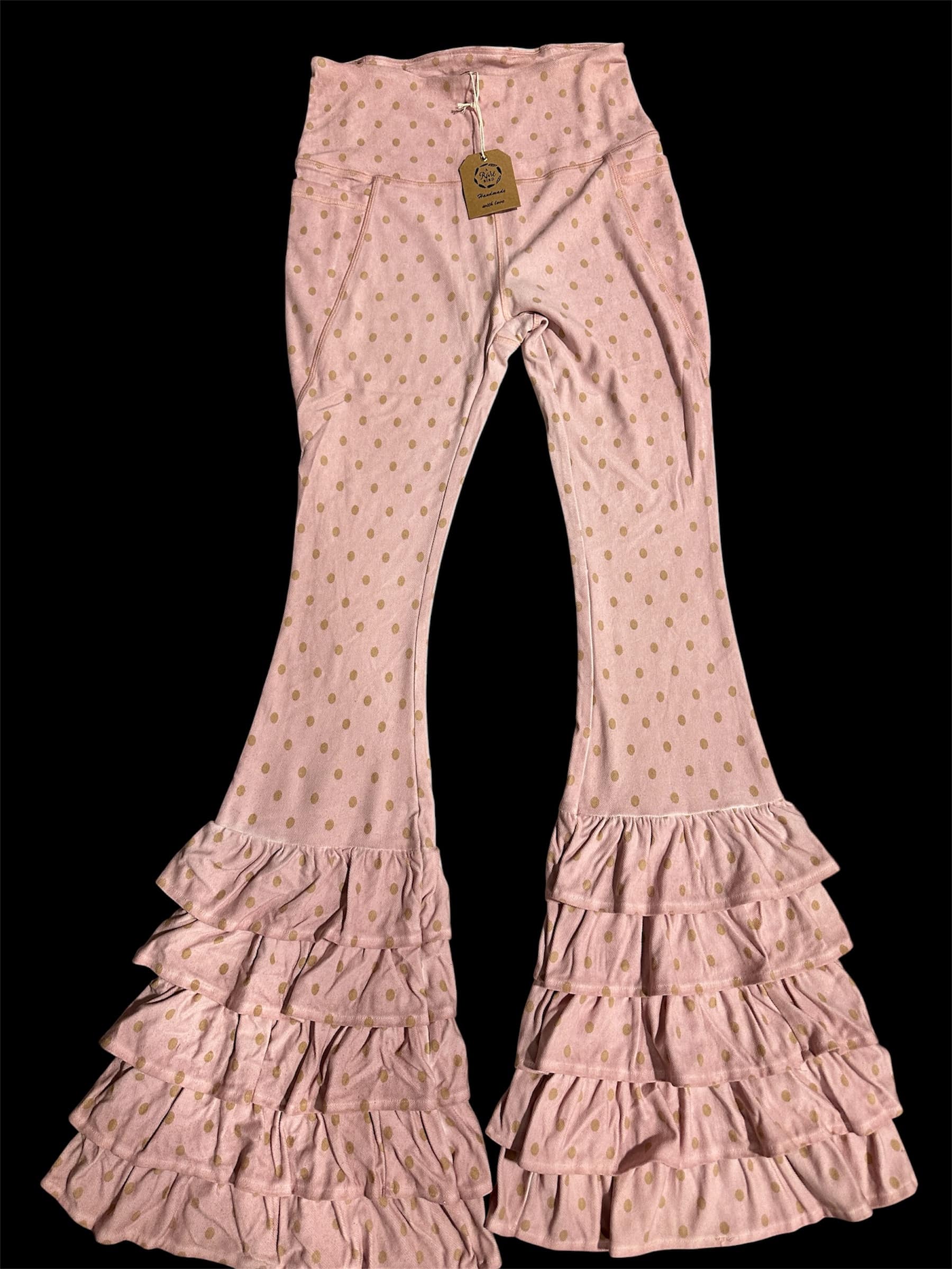 Playful and oh so flattering! These Pink Polka Dot Leggings feature a soft, stretchy blend for all day comfort, finished with statement tiered ruffles at the hem for the cutest touch of flair. Perfect for dressing up your everyday look or adding a fun twist to your outfit! Available in S, M/L, & XL.